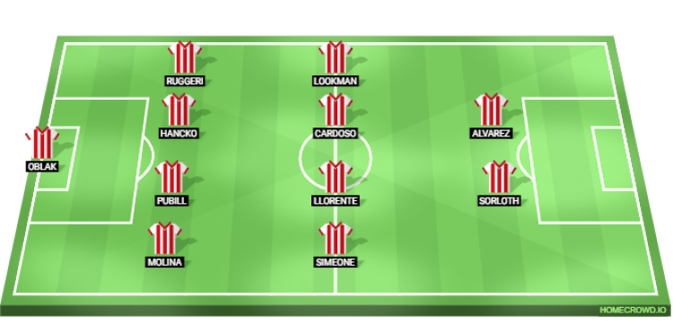 Probable Lineup (4-4-2): Oblak; Molina, Pubill, Hancko, Ruggeri; Simeone, Llorente, Cardoso, Lookman; Sorloth, Alvarez