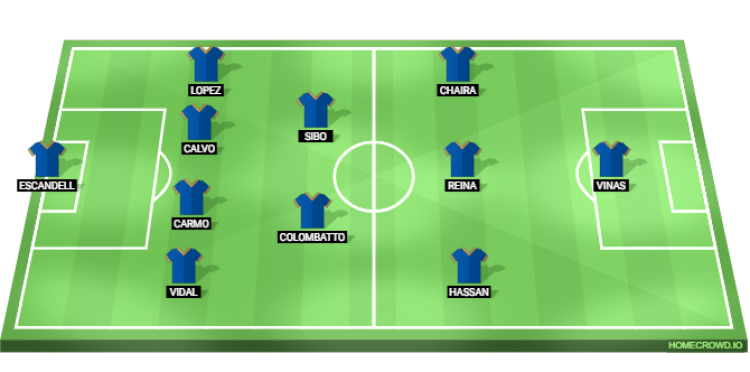 Probable Lineup (4-2-3-1): Escandell; Vidal, Carmo, Calvo, Lopez; Colombatto, Sibo; Hassan, Reina, Chaira; Vinas