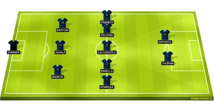 Probable Line-up (3-5-2): Sommer; Bisseck, Akanji, Bastoni; Henrique, Barella, Calhanoglu, Zielinski, Dimarco; Thuram, Esposito