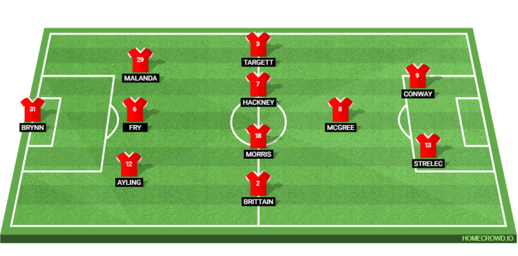 Probable Lineup (3-4-1-2): Brynn; Ayling, Fry, Malanda; Brittain, Morris, Hackney, Targett; McGree; Strelec, Conway