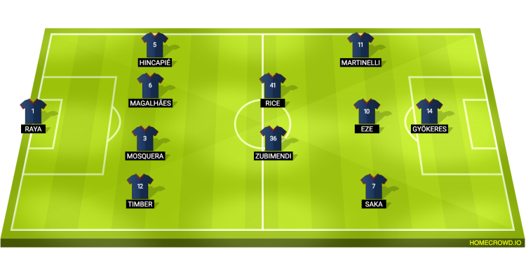Probable Lineup (4-2-3-1): Raya; Timber, Mosquera, Gabriel, Hincapie; Zubimendi, Rice; Saka, Eze, Martinelli; Gyokeres