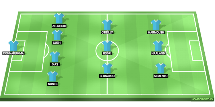 Matheus Nunes and Rayan Ait-Nouri are expected to feature as the full-backs, while Ruben Dias will pair up with Marc Guehi in the heart of the defence. The back four will look to keep things tight, and they will receive significant support from Rodri, who will feature in the holding role.