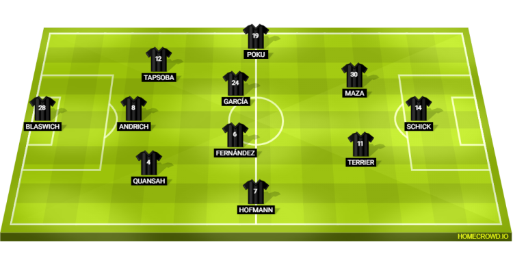 Probable Lineup (3-4-2-1): Blaswich; Quansah, Andrich, Tapsoba; Hofmann, Fernandez, Garcia, Poku; Terrier, Maza; Schick
