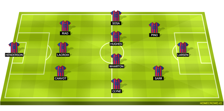 Probable Lineup (3-4-2-1) – Henderson; Canvot, Lacroix, Riad; Clyne, Wharton, Hughes, Sosa; Sarr, Pino; Strand Larsen