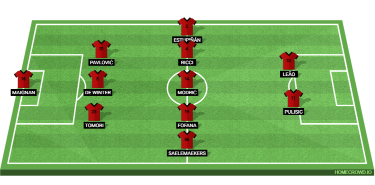 Probable Lineup (3-5-2): Maignan; Tomori, De Winter, Pavlovic; Saelemaekers, Fofana, Modric, Ricci, Estupinan; Pulisic, Leao