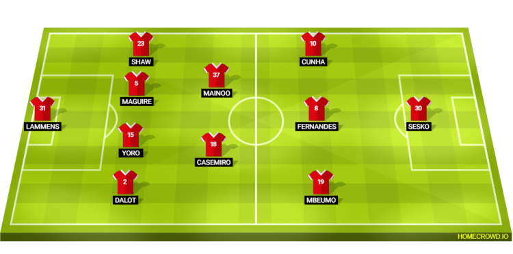Predicted Manchester United: Lammens; Dalot, Yoro, Maguire, Shaw; Casemiro, Mainoo; Mbeumo, Bruno Fernandes, Cunha; Sesko