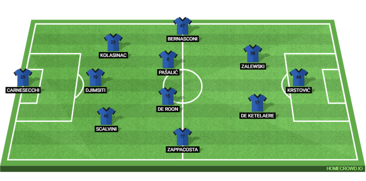 In the midfield, Davide Zappacosta is expected to feature as the right wing-back, with Lorenzo Bernasconi on the left flank, while Marten de Roon and Mario Pasalic occupy central midfield positions, offering a blend of defensive solidity and forward support.