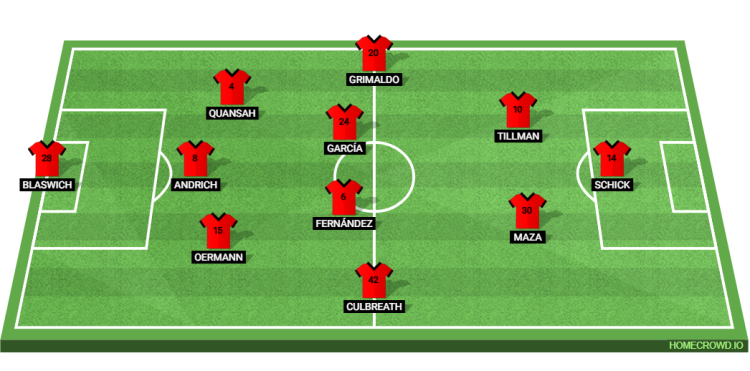 Probable Lineup (3-4-2-1): Blaswich; Oermann, Andrich, Quansah; Culbreath, Fernandez, Garcia, Grimaldo; Maza, Tillman; Schick