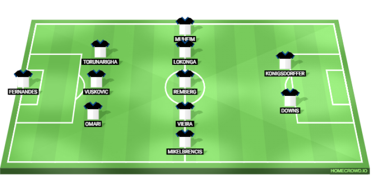 Probable Lineup (3-5-2): Fernandes; Omari, Vuskovic, Torunarigha; Mikelbrencis, Vieira, Remberg, Lokonga, Muheim; Downs, Konigsdorffer