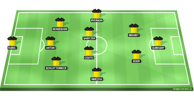 Probable Lineup (3-4-2-1): Kobel; Anton, Schlotterbeck, Bensebaini; Couto, Sabitzer, Nmecha, Ryerson; Beier, Brandt; Guirassy
