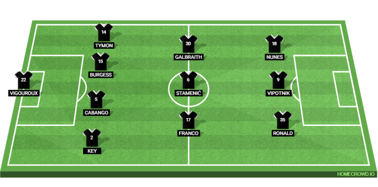 Probable Lineup (4-3-3): Vigouroux; Key, Cabango, Burgess, Tymon; Franco, Stamenic, Galbraith; Ronald, Vipotnik, Nunes