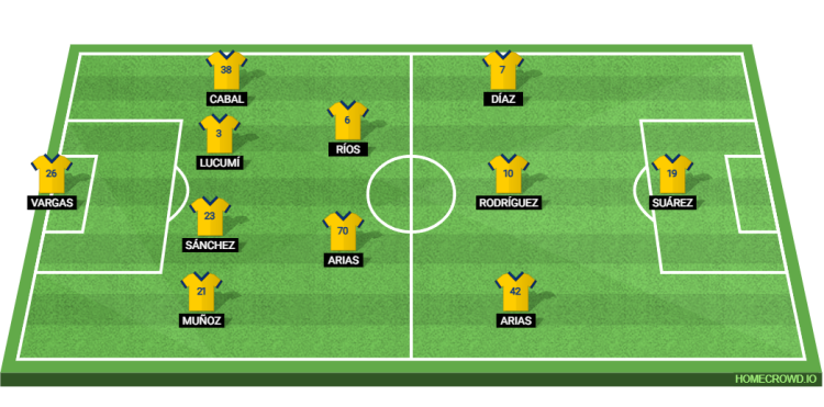 Probable Lineup (4-5-1): Vargas; Munoz, Sanchez, Lucumi, Cabal; Lerma, Rios; Jhon Arias, Rodriguez, Diaz; Suarez