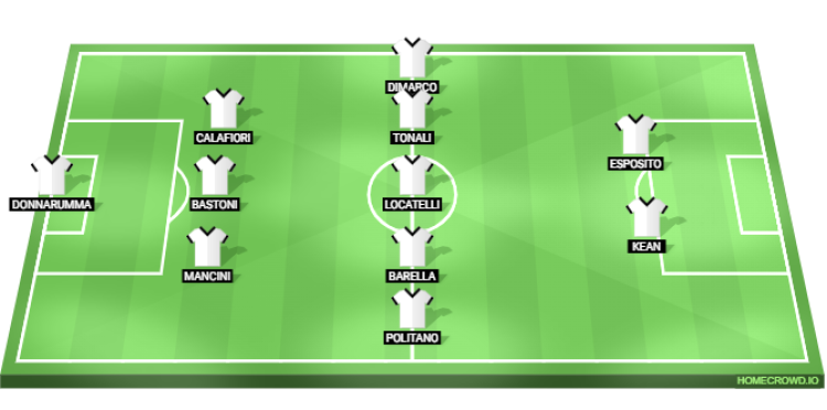 Probable Lineup (3-5-2): Donnarumma; Mancini, Bastoni, Calafiori; Politano, Barella, Locatelli, Tonali, Dimarco; Kean, Esposito