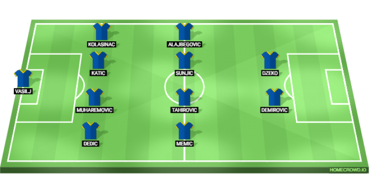Probable Lineup (4-4-2): Vasilj; Dedic, Muharemovic, Katic, Kolasinac; Memic, Tahirovic, Sunjic, Alajbegovic; Demirovic, Dzeko