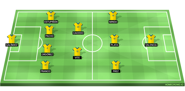 Probable Lineup (4-2-3-1): Galindez; Franco, Ordonez, Pacho, Estupinan; Caicedo, Vite; Paez, Plata, Minda; Valencia