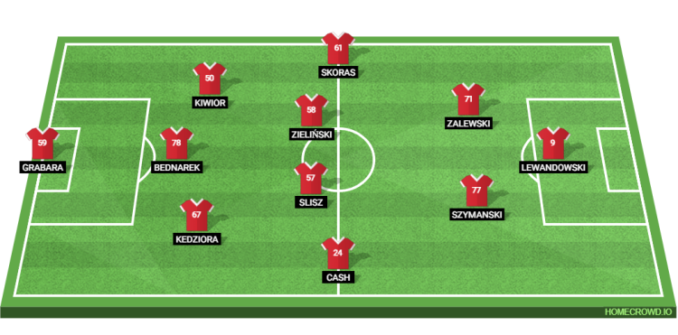 Probable Lineup (3-4-2-1): Grabara; Kedziora, Bednarek, Kiwior; Cash, Slisz, Zielinski, Skoras; Szymanski, Zalewski; Lewandowski