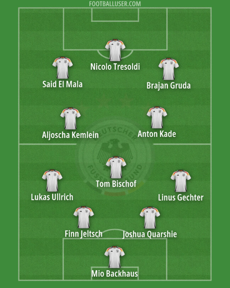 A team featuring five changes from the one Di Salvo last deployed in November compensated for the promotion of Lennart Karl by moving Brajan Gruda into the right slant in Di Salvo’s 4-3-3. Borussia Mönchengladbach’s Lukas Ullrich and Hertha BSC’s Linus Gechter also took over the fullback roles. Mio Backhaus returned in goal whilst Anton Kade was preferred to his Augsburg teammate Mert Kömür.