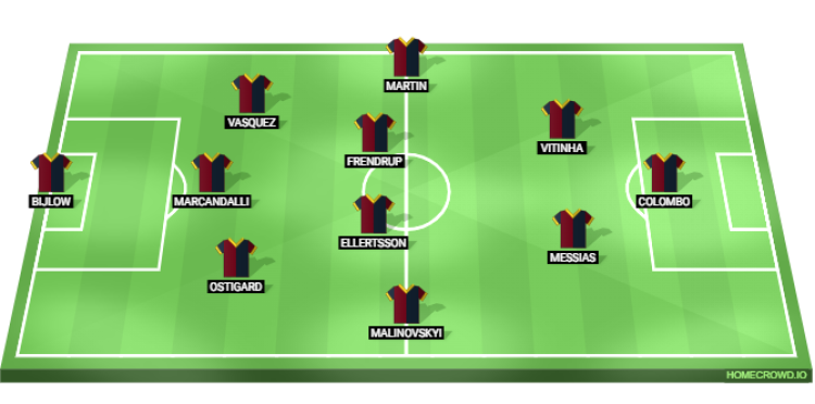Probable Lineup (3-4-2-1): Bijlow; Marcandalli, Ostigard, Vasquez; Ellertsson, Frendrup, Malinovskyi, Martin; Messias, Vitinha; Colombo