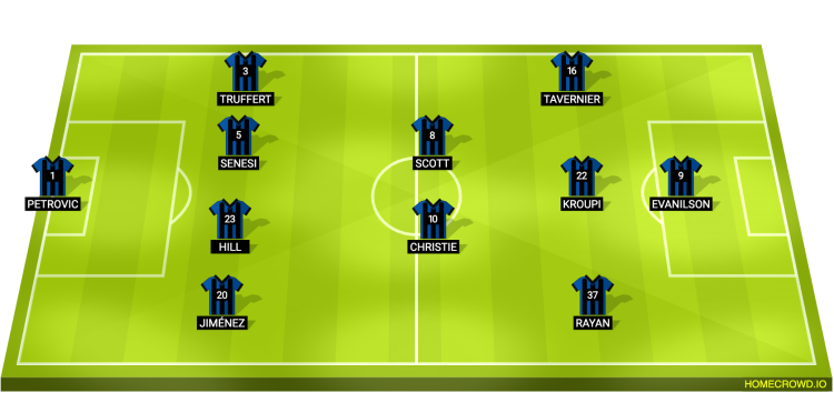 Probable Lineup (4-2-3-1): Petrovic; Jimenez, Hill, Senesi, Truffert; Christie, Scott; Rayan, Kroupi, Tavernier; Evanilson