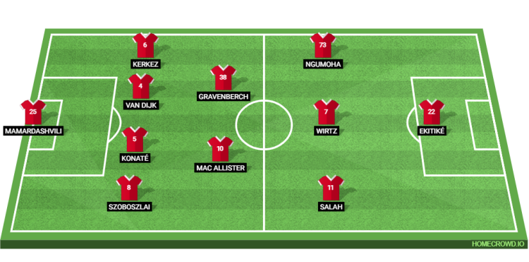 Probable Lineup (4-2-3-1): Mamardashvili; Szoboszlai, Konate, Van Dijk, Kerkez; Gravenberch, Mac Allister; Salah, Wirtz, Ngumoha; Ekitike