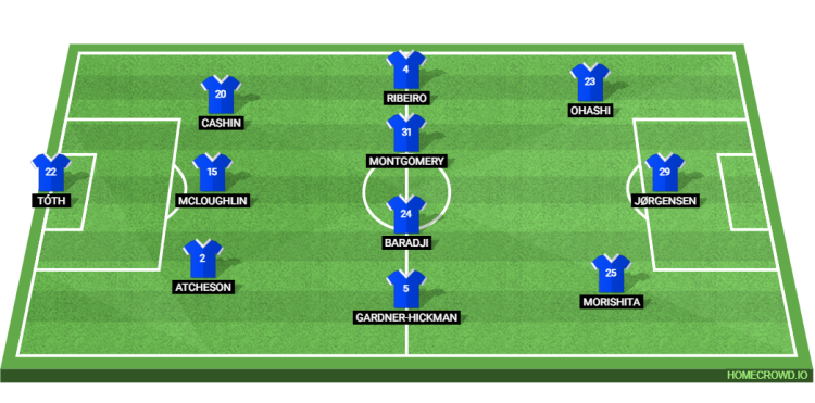 Probable Lineup (3-4-3): Toth; Atcheson, McLoughlin, Cashin; Gardner-Hickman, Baradji, Montgomery, Ribeiro; Morishita, Ohashi, Jorgensen