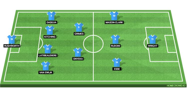 Probable Lineup (4-2-3-1): Rushworth; Van Ewijk, Latibeaudiere, Kitching, Dasilva; Onyeka, Grimes; Esse, Rudoni, Mason-Clark; Wright