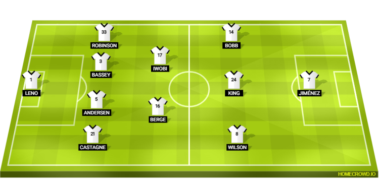 Probable Lineup (4-2-3-1): Leno; Castagne, Andersen, Bassey, Robinson; Berge, Iwobi; Wilson, King, Bobb; Jimenez