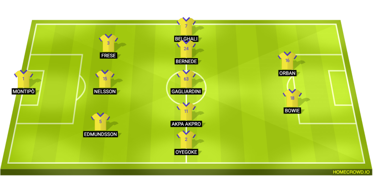 Probable Lineup (3-5-2): Montipo; Edmundsson, Nelsson, Frese; Oyegoke, Akpa Akpro, Gagliardini, Bernede, Belghali; Bowie, Orban