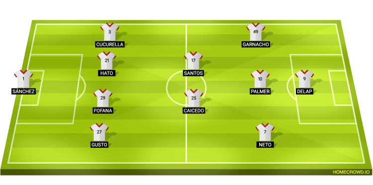 Probable Lineup (4-2-3-1): Sanchez; Gusto, Fofana, Hato, Cucurella; Caicedo, Santos; Neto, Palmer, Garnacho; Delap