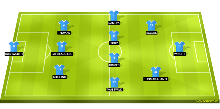 Probable Lineup (3-4-2-1) – Rushworth; Kitching, Latibeaudiere, Thomas; Van Ewijk, Grimes, Torp, Dasilva; Thomas-Asante, Eccles; Wright