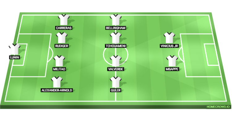Probable Lineup (4-4-2): Lunin; Alexander-Arnold, Militao, Rudiger, Carreras; Guler, Valverde, Tchouameni, Bellingham; Mbappe, Vinicius Jr