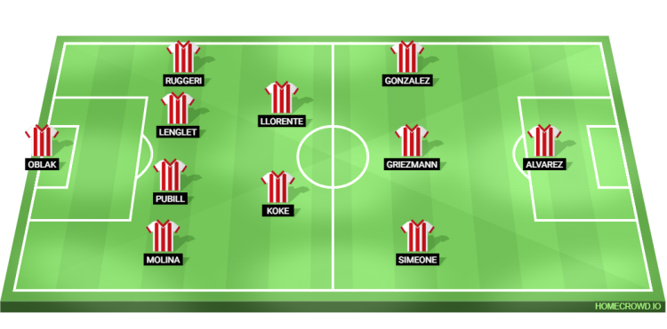 Probable Lineup (4-2-3-1): Oblak; Molina, Pubill, Lenglet, Ruggeri; Koke, Llorente; Simeone, Griezmann, Gonzalez; Alvarez