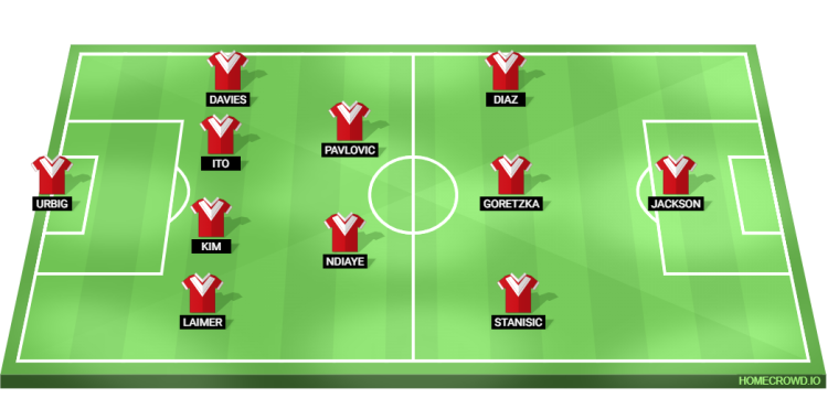 Probable Lineup (4-2-3-1): Urbig; Laimer, Kim, Ito, Davies; Ndiaye, Pavlovic; Stanisic, Goretzka, Diaz; Jackson