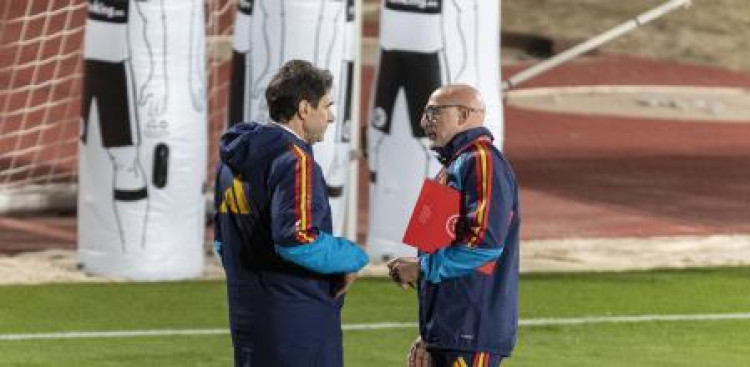 El técnico riojano ya había hablado por la mañana en caliente con ‘RNE’, pero después de la sesión abierta del martes, De la Fuente estuvo conversando con Aitor Karanka, director deportivo de la RFEF, y Ladis García, responsable de prensa de la selección absoluta masculina. La intención no era otra que calmar las aguas en el conflicto con el Barça por Lamine Yamal.