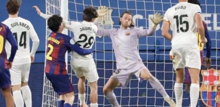 El filial azulgrana no inquietó hasta el 75' con dos buenos disparos de Shane que desvió Abril, quien volvió a evitar la sentencia de Toni en el 82'. El Valencia Mestalla llegó vivo al tramo final y Cuenca y Bernad fueron providenciales para evitar que Aimar Blázquez empatara. Pero el portero no pudo impedir su gol de penalti en el 95'.