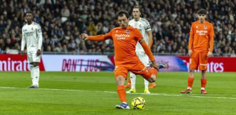 Mikel Oyarzabal suma y sigue en el Santiago Bernabéu. Undécimo tanto de la temporada del capitán eibartarra, décimo en Liga, tras convertir la pena máxima en el minuto 22 para empatar el encuentro ante el Real Madrid tras el gol inicial de Gonzalo.