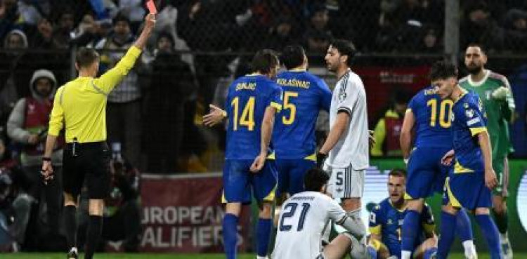 Sacó de puerta Donnarumma, el mejor de los suyos durante la primera parte, pero con la mala suerte de que su golpeo salió flojo y un jugador de Bosnia ganó por arriba un balón que no superó ni el centro del campo. Ese balón aéreo ganado se convirtió en un pase al espacio para Memic, quien ganó en velocidad a Bastoni, que se tiró al suelo intentando cortar el avance del extremo y lo acabó derribando. Al ser último hombre se llevó la roja de Clement Turpin.