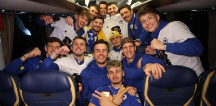 Después del triunfo conseguido en el estadio de Bilino Polje, en la ciudad bosnia de Zenica, los 'Zmajevi' (Dragones, el apodo de los jugadores de la selección bosnia) se trasladaron a Sarajevo, recorriendo unos 65 kilómetros por un camino bordeado de centenares de ciudadanos que los saludaban, hasta llegar al céntrico monumento de la capital 'Fuego eterno'.