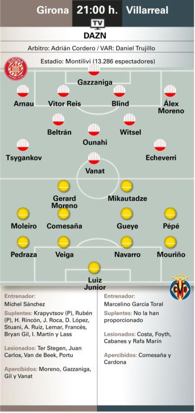 El 5-0 de la primera vuelta en La Cerámica sigue muy presente en la memoria del equipo. Aquella derrota no solo fue contundente en el marcador, sino también en las sensaciones. El Girona quedó desdibujado, sin respuestas, en un momento en el que aún buscaba su identidad en la competición. Fue un golpe duro que marcó un antes y un después en el inicio de curso. Ahora, meses después, el contexto es distinto, pero el recuerdo sigue ahí como advertencia.