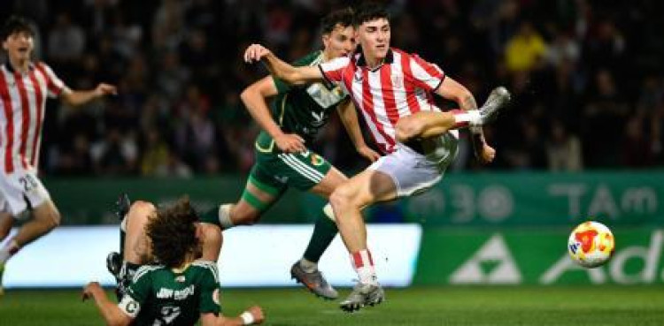El Bilbao Athletic era mejor, haciendo valer la mayor calidad técnica de sus hombres ofensivos. Korkut obligó a Quevedo a realizar una buena intervención con un lanzamiento lejano, pero el partido se fue al descanso con ventaja local.