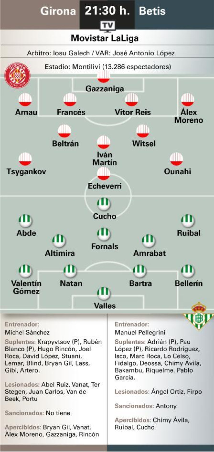 En lo deportivo, el equipo local recupera piezas importantes como Daley Blind y Joel Roca, aunque vuelve a perder a Abel Ruiz. El problema en la delantera obliga a reinventar el ataque y todo apunta a que Echeverri asumirá el rol de referencia ofensiva, en una apuesta por la movilidad y el talento entre líneas, más que por una figura fija en el área. Stuani, mientras tanto, se perfila como alternativa desde el banquillo o en función del contexto.