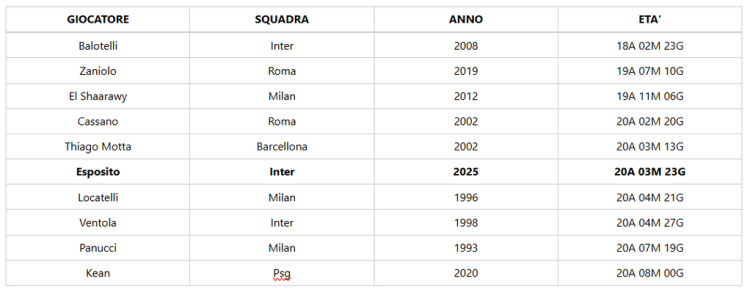 Pio Esposito ha colpito ancora. Dopo la prima rete in campionato e in Nazionale, l'attaccante dell'Inter ha siglato il suo primo gol anche in Champions League, sul campo dell'Union SG. Stabilendo un primato personale invidiabile: scopriamo insieme la top 10 degli italiani più giovani alla loro prima marcatura nella massima competizione continentale.