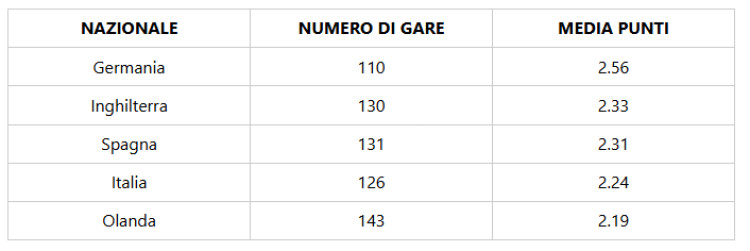 Chi ha ottenuto più punti nelle qualificazioni ai Mondiali? Il dato storico a livello globale: in media è la Germania a primeggiare, con l'Italia che si ferma al quarto posto.