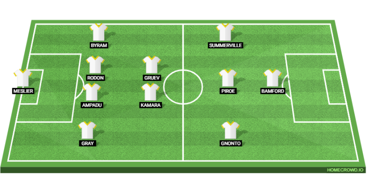 Probable Lineup (4-2-3-1): Meslier; Gray, Ampadu, Rodon, Byram; Gruev, Kamara; Gnonto, Piroe, Summerville; Bamford
