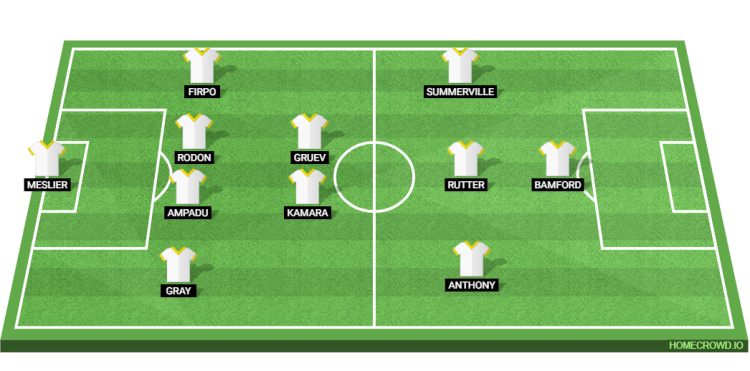 Probable Lineup (4-2-3-1): Meslier; Gray, Rodon, Ampadu, Firpo; Kamara, Gruev; Anthony, Rutter, Summerville; Bamford