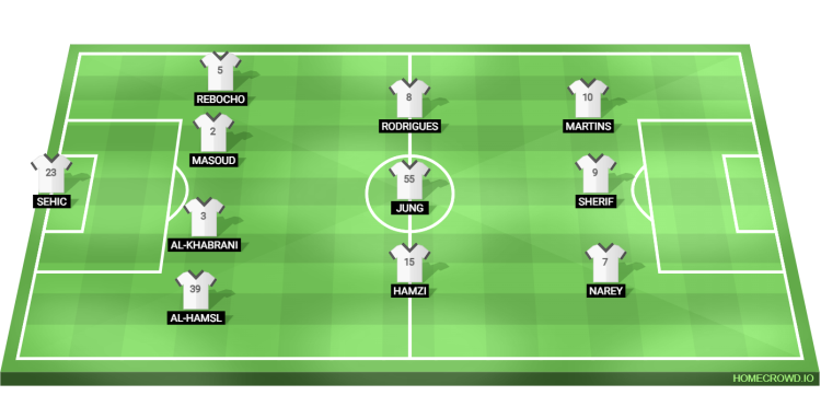 Probable Lineup (4-3-3): Sehic; Al-Hamsal, Al-Khabrani, Masoud, Rebocho; Hamzi, Jung, Rodrigues; Narey, Sherif, Martins
