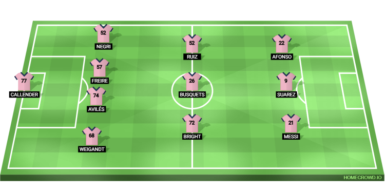 Probable Lineup (4-3-3): Callender; Weigandt, Aviles, Freire, Negri; Bright, Busquets, Ruiz; Messi, Suarez, Afonso