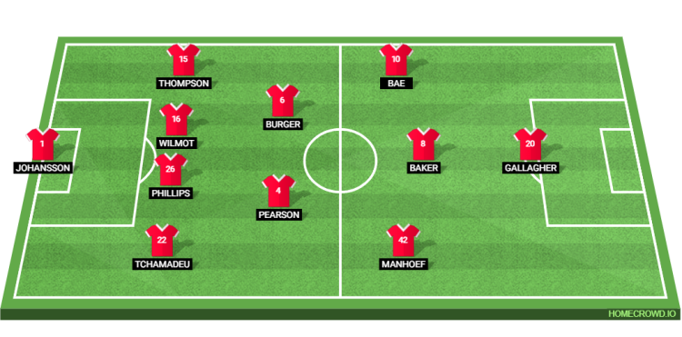 Probable Lineup (4-2-3-1): Johansson; Tchamadeu, Phillips, Wilmot, Thompson; Pearson, Burger; Manhoef, Baker, Bae; Gallagher