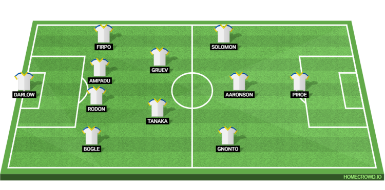 Probable Lineup (4-2-3-1): Darlow; Bogle, Rodon, Ampadu, Firpo; Tanaka, Gruev; Gnonto, Aaronson, Solomon; Piroe