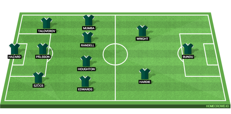 Probable Lineup (3-4-2-1): Hazard; Szucs, Palsson, Talovierov; Edwards, Houghton, Randell, Mumba; Hardie, Wright; Bundu